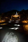 La nouvelle identité nocturne a été pensée selon trois axes conducteurs : respecter la morphologie du Casone et de la statue de Napoléon, redessiner les éléments structurants de l’esplanade et des différents espaces attenants, et proposer une ambiance intimiste dans la grotte Napoléon ainsi qu’un éclairage chaleureux des cheminements piétons.