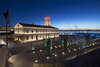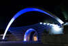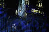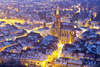 Drapé lumineux nappant le paysage nocturne de ses projections graphiques poétiques et échelle de lumière offrant une ascension vers un cœur historique majestueux.