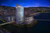 Figure emblématique et intemporelle, la tour est magnifiée dans sa verticalité par un voile de lumière à chaque étage tramant la façade et dessinant dans le panorama urbain un corps mouvant gracieux.