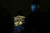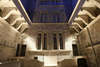 Noire dans le jour, la pierre devient claire dans la nuit et rayonne d’une lumière blanche allégorique.